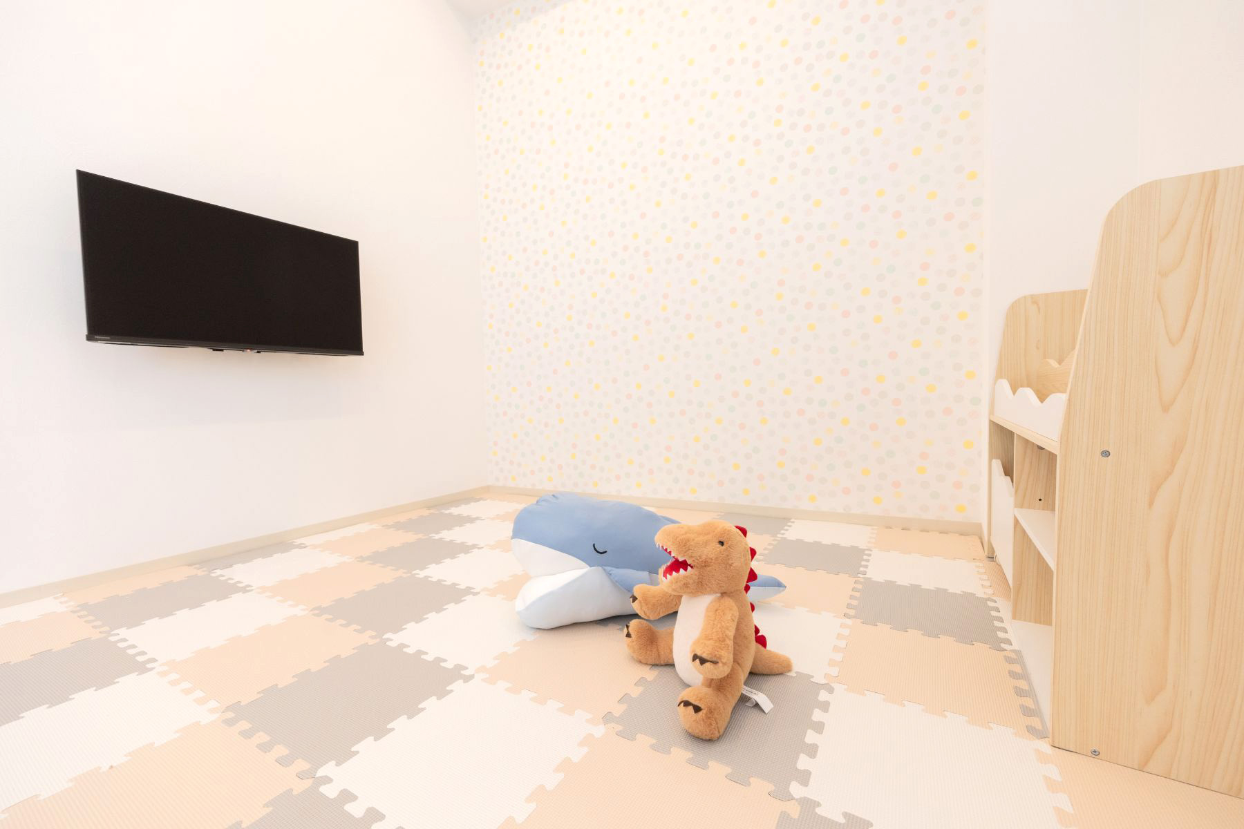 歯科医院に行きたくなるような、楽しみな気持ちにさせてくれるキッズスペース。将来的には保育士さんを在中させて、ご家族の治療中にお子様をお預かりします。