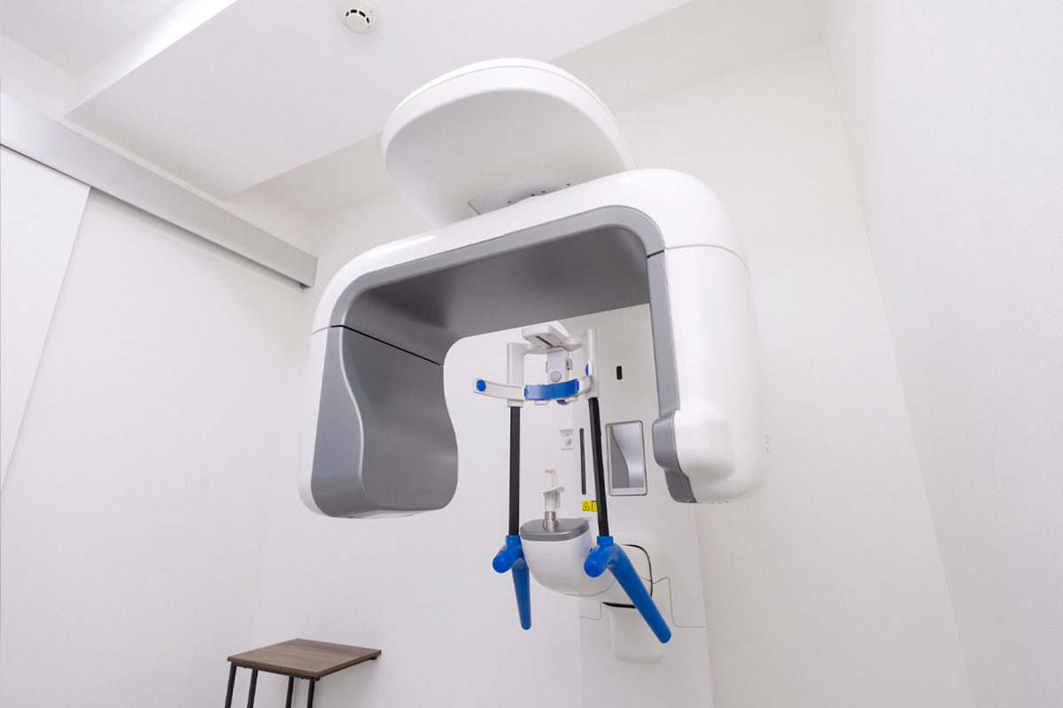 立体的に歯・顎骨・上顎洞などの顔面領域の構造を詳細に確認できる画像診断装置です。従来のレントゲンでは判断が難しい微細な病変や神経の位置、骨量などを精密に解析できます。